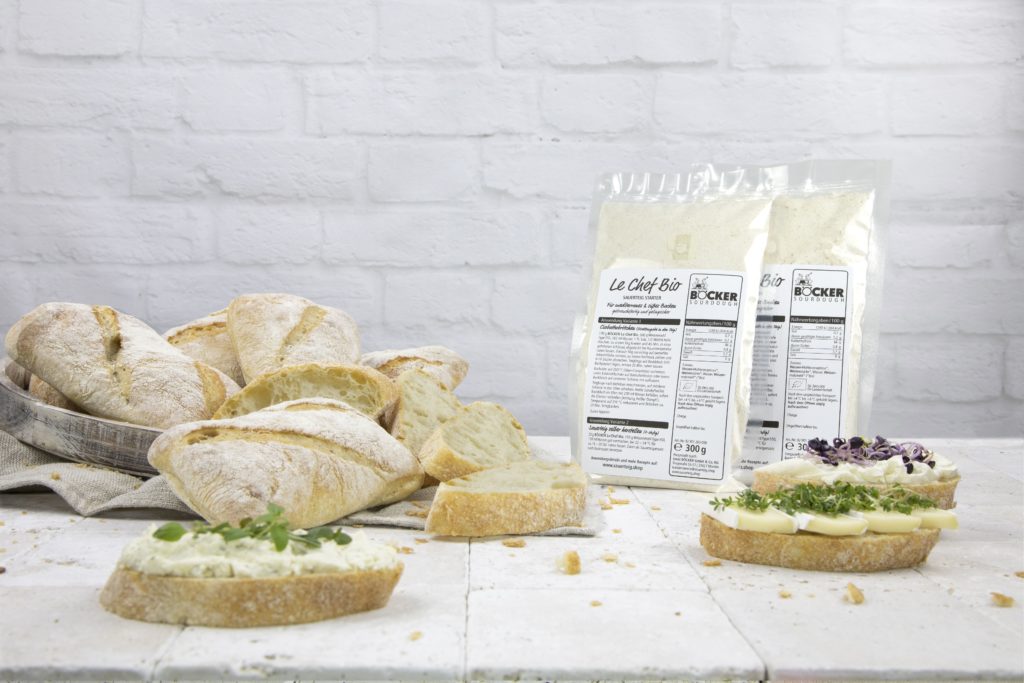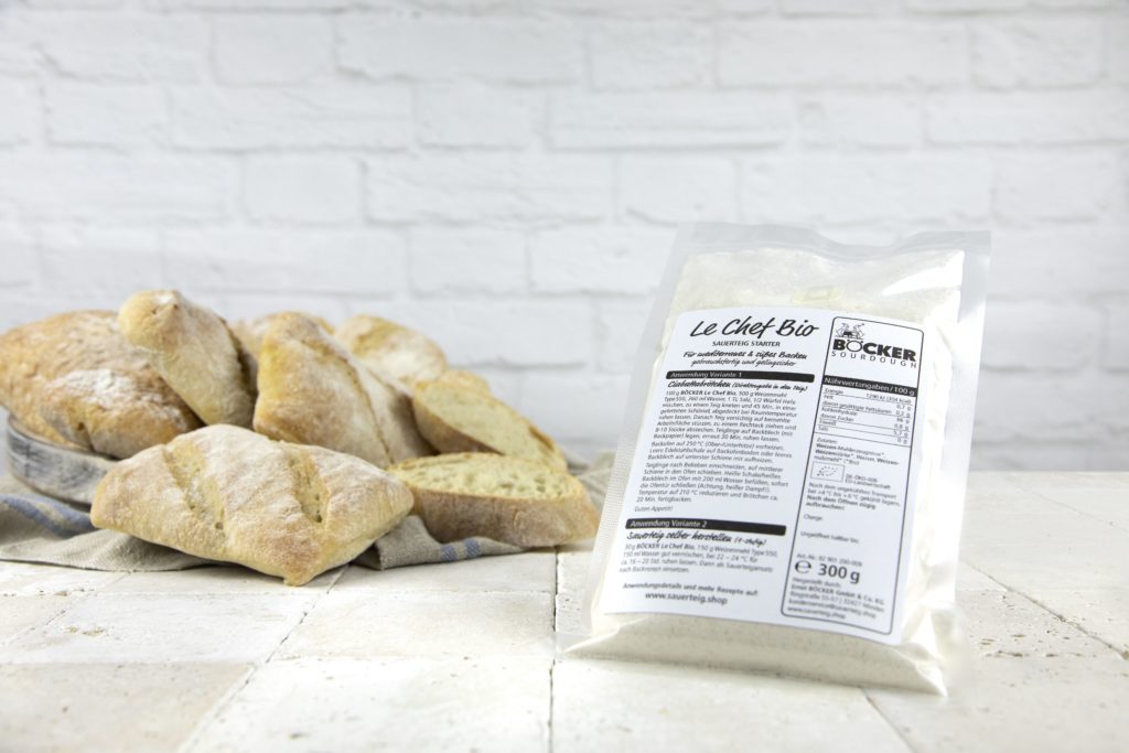 Sauerteig ist nach wie vor absolut im Trend. Denn er verleiht Backwaren nicht nur ein vollmundiges Aroma, sondern macht sie auch noch länger haltbar. Damit Sauerteig-Fans einfach, gelingsicher und schnell leckere Sauerteigbackwaren in den eigenen vier Wänden problemlos nachbacken können, bietet das Familienunternehmen BÖCKER aus Minden mit über 110 Jahren Erfahrung hochwertige Sauerteig-Starter für die hauseigene Backstube an. Neben dem BÖCKER Reinzucht-Sauerteig auf Roggenbasis, gibt es nun neu den Le Chef Bio Sauerteig-Starter für mediterrane Weizengebäcke. Beide Sauerteig-Starter können direkt in den Teig gegeben werden oder als Starthilfe für den eigenen Sauerteig dienen. Dank der natürlichen Sauerteighefen und der aktiven Milchsäurebakterien wird ein sicherer Start garantiert. Die Dosierung ist aufgrund der krümeligen Konsistenz sehr einfach. Egal für welchen Einsatz man sich entscheidet, die Anwendung ist kinderleicht und gelingsicher – und das Backergebnis überzeugend lecker. Je nach Backware passend angewendet, schmecken Ciabatta, Baguette sowie Brot und Brötchen herrlich aromatisch, mild und vollmundig. Aber auch süßes Kleingebäck und Backwaren aus Hefeteig werden mit dem BÖCKER Le Chef Bio besonders fein im Geschmack. Auch Backen ohne Hefe ist mit dem Sauerteig-Starter möglich. Passende Rezepte sowie ein Sauerteig-Lexikon und Bestellformular finden sich im Onlineshop unter www.sauerteig.shop.